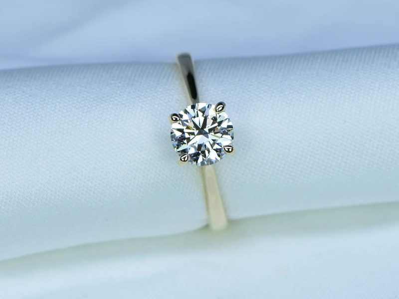 Set in a beautifully crafted 18-carat yellow gold band, the warm, golden hue complements the diamond’s icy brilliance, creating a timeless and sophisticated design.